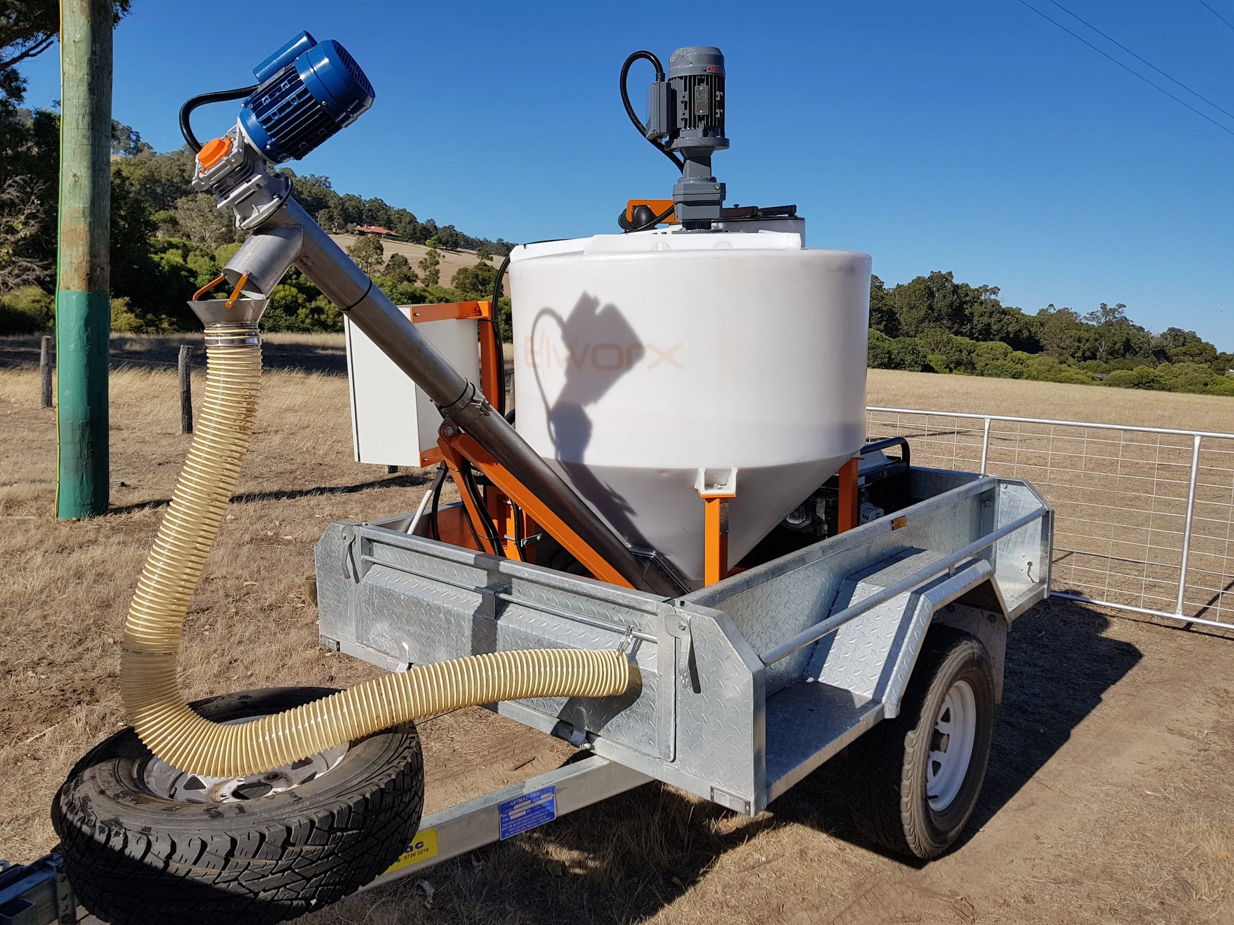 The machine below was developed to ferment and agitate a grain slurry for stock feed. With some tweaks we aim to make a similar machine to mix a compost slurry and deliver to tree lines or crops. This type of equipment for applying biologicals is necessary when a transitioning from Industrial to Regenerative Agriculture. The soils need a boost in the early years.